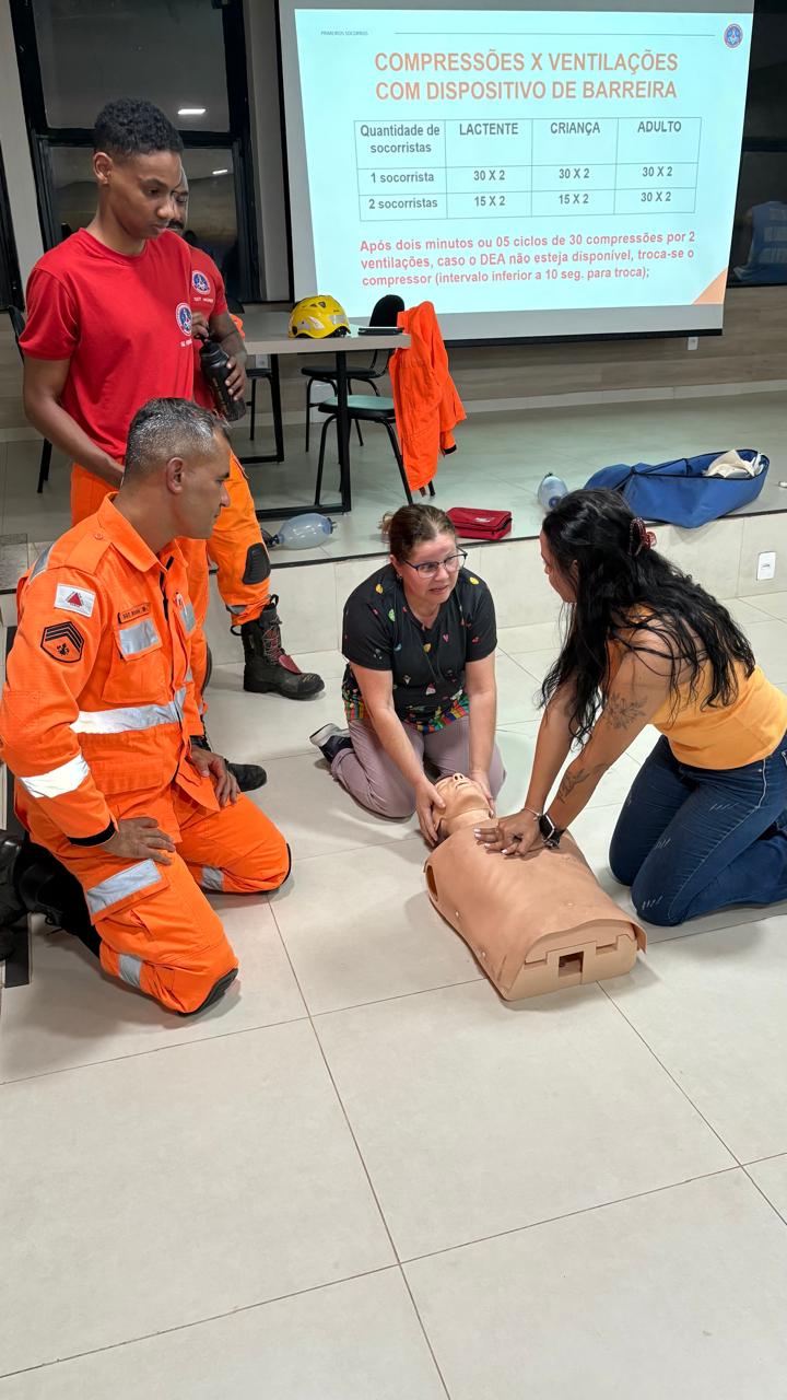 O treinamento, conduzido por militares do 11º Batalhão de Bombeiros Militar, teve duração de quatro horas e abordou noções básicas de Atendimento Pré-Hospitalar, conforme previsto na Resolução nº 1.233/2024. A formação foi ministrada em nível introdutório, com foco no Suporte Básico de Vida, direcionado a profissionais sem conhecimento prévio na área.
